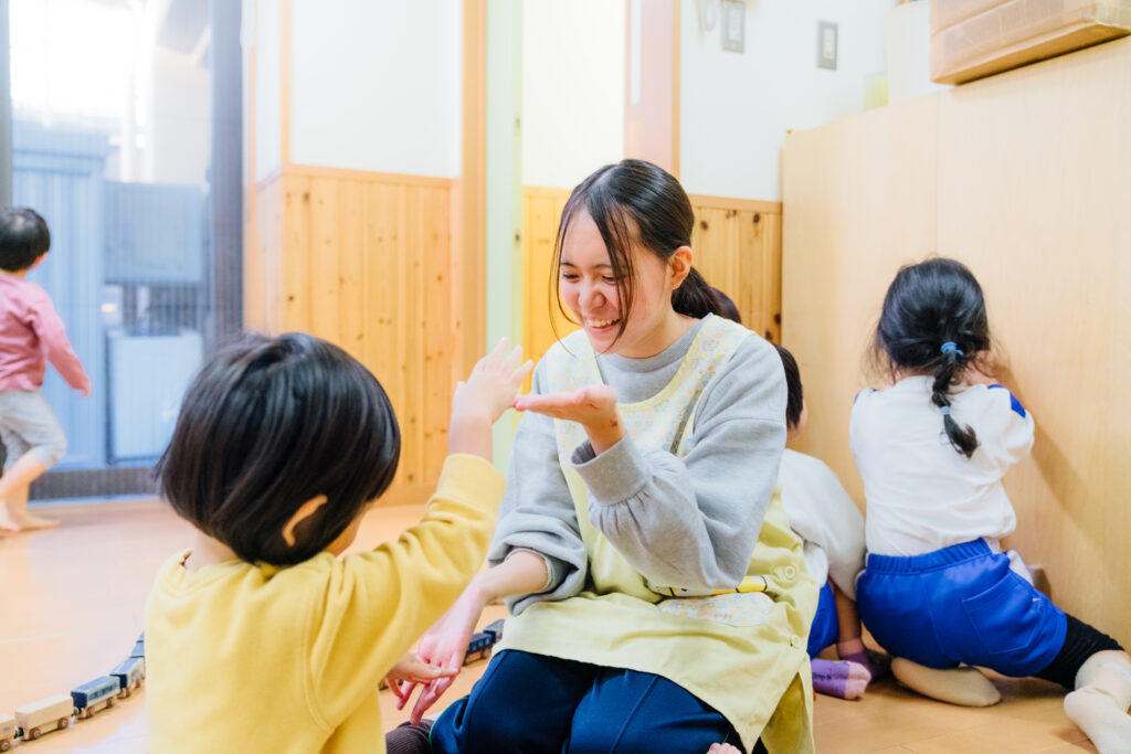 外遊びに行く準備などで隙間時間ができてしまったときに、子どもたちの集中が散漫してしまう時があって。そのときにサッと「今から手遊びするよ〜!」と子どもたちの気持ちを高めながら次の活動に繋げたり、事前準備をすることで隙間時間を作らない工夫をされていました。