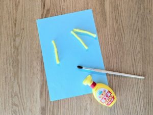 ② 画用紙上の毛糸を貼りたい部分にボンドをつける。