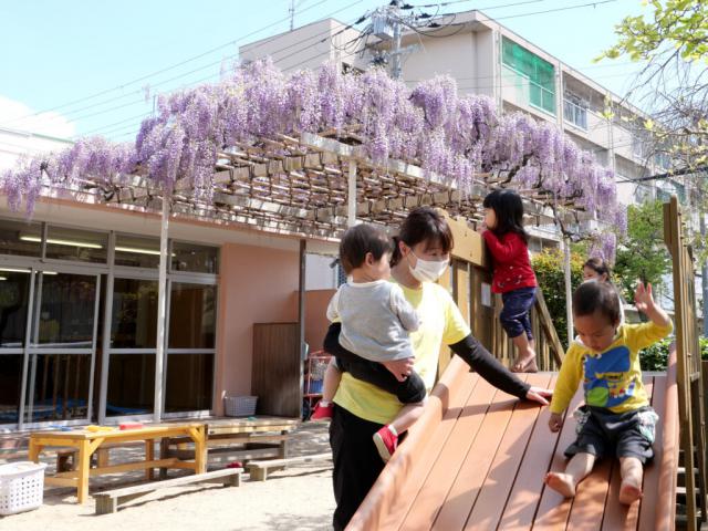 くりくま保育園には、赤ちゃん専用の園庭とテラスがあるんです!