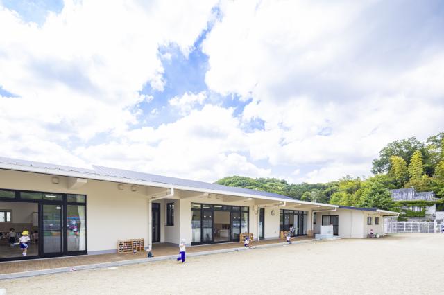 園の隣にお山があり、山に登ってのびのびと遊ぶことができる環境