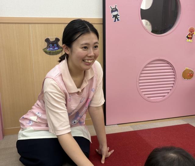 - 中学、高校が同じ先輩から連絡が来て、園見学をしたことがきっかけです。園見学の時に教育保育方針を聞き、興味を持ちました。見学の時に子どもへの対応が丁寧で他園とは違うところや、就職説明を丁寧にしてくださったことも選んだきっかけの一つです。