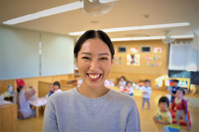 - 保育士同士の仲も良くて、先輩も話しやすく、楽しいです!1年の前半は運動会、後半は発表会と大きな目標があり、そこに向かって日々練習して、成長していき、本番での達成感を子どもたちと一緒に味わえることが魅力だと思っています。