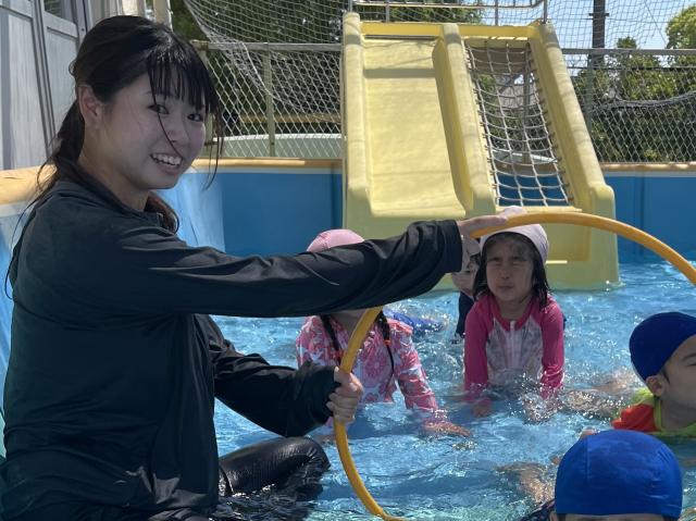 - 中学時代の経験から子どもに携わる関係の仕事をしたいと考えていました。そして、高校・大学と教育学科へ進学し、実習やボランティアなどで発達障がいのある子どもたちと関わる機会を多くいただき、とても奥深くやりがいを感じて療育に興味を持ちました。そこでもっと視点を広げて色んなことを学びたい、スキルアップを目指したいいう思いからこちらの園で学ばさせていただくこととなりました。