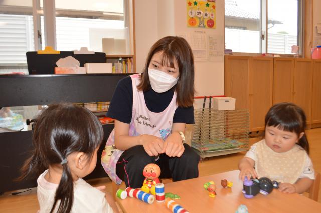 本園はどの学年も複数担任制です。教育・保育内容を気軽に検討しあえる環境があります。また、学年の枠を越えて、教育・保育の検討会もあるので、他の先生方からの助言も頂くことができ、色々な教育・保育方法を学べて勉強になります。