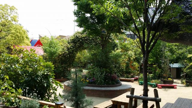 ・築山、ツリーハウスなどがあり、自然に溢れた園庭です。