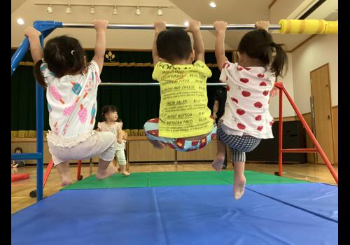 私達は、こども達と一緒に色々なことにチャレンジ(挑戦)します!『元気な体』をと優しい心』を園目標に幅広い教育保育を展開しています。 ◎体育遊び【元気な体をつくる】3歳児クラス以上は、年間を通してスイミングを行います。