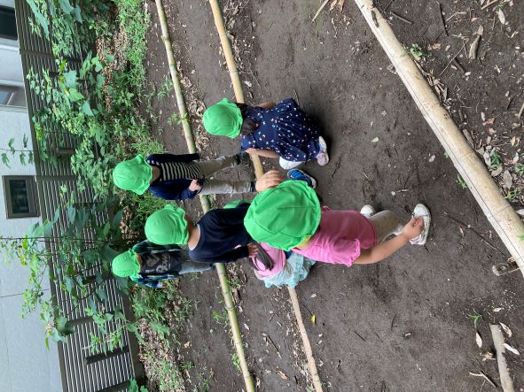 3~5歳児の幼児は自然野外活動として日本の暦を話題のもとにして活動テーマを話し合い、探索活動を行っています。