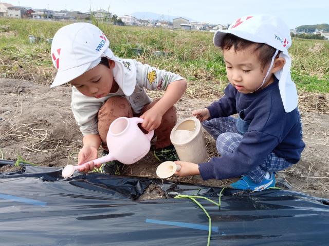 見たり、聞いたり、触ったり、匂いをかいだり、味わったりと、子どもたちが五感を存分に用いて、心とからだを動かすことを大切にしながら、仲間とともに育ちあい、太くて長い根っこを伸ばしていってくれることを願って保育しています。