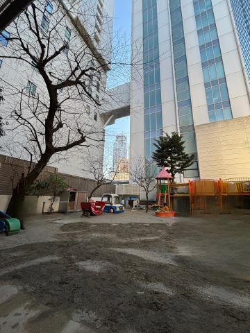 高層ビルの中にポツンとある保育園。懐かしさを感じる園舎と人間関係の良い職場でのびのびと保育をしています。