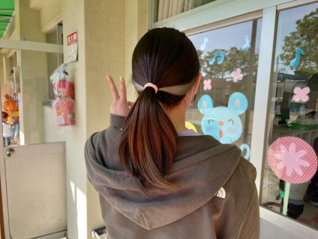 - 慣れない環境で緊張してしまうと思いますが、子どもたちに優しく声を掛けてあげたり接したりするのを見ると、優しくて素敵な先生になりそうだなあと思います。
