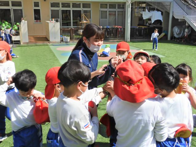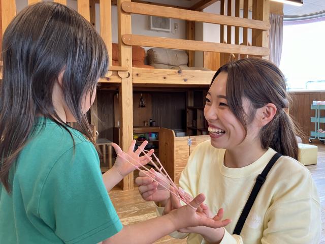 - 先生も一緒に遊んで子どもたちと遊ぶことで、遊びの中で子どもたちの色々な一面を知ることができて楽しいです。たくさんお話ししてくれるようになったり、自分でできることが増えていったりと、子どもたちの成長を感じ、毎日新しい気づきや発見があるところがこの仕事の魅力だと思います。