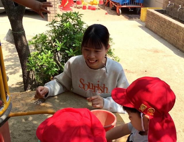 - はじめての就職活動。後悔したくないと思い、早めに動き出したものの、緊急事態宣言真っ只中で園見学を実施している会社はありませんでした。そんな中、WITHでは子どもたちが散歩に出掛けている時間に園の中を見学したり、子どもたちの遊びや食事の様子を園の外から覗いたりと、少しでも園の雰囲気を知れるように動いてくれました。