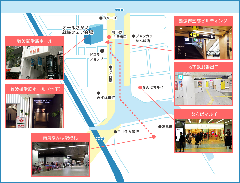 難波御堂筋ホール 10Fホール10/9Fホール9A 受付は10Fのホール10にて行います。 |