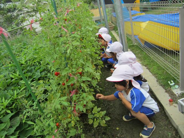 そして、園の小さな畑で4・5歳児が野菜を育て、クッキングをして食べたり、花の種や球根を植えて育てたりもしています。