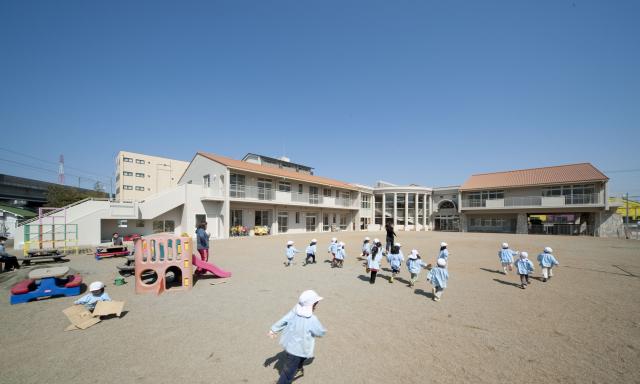 パルテノン神殿をイメージした園舎外観、広い運動場、広い駐車場を整備しています。子ども達を愛し、保護者の方を愛し、職員の皆様を愛し、人の愛があふれるこども園を目指しています。優しさと思いやりと笑顔が交流しあう場所です。リズム運動・柔軟体操・ヨガ・サーキット等の運動に取り組み、心身のコントロール力の育ちを支援しています。子ども同士のトラブルを大切にして、関わり方を練習し、練習ができたらほめて認めて自尊感情の育ちに繋げます。小さな畑には、野菜が育ち、果物が育ち、みんなで自然のめぐみをいただきます。花と緑でほっと一息 心が和みます。