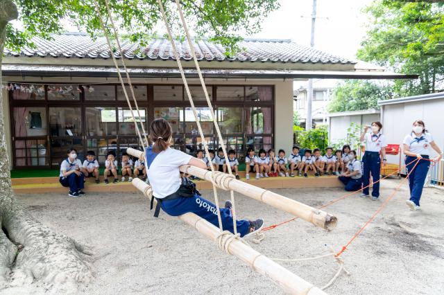そのために、創意と工夫を凝らし、嵯峨嵐山の自然の中で思い切り遊ぶことを保育に取り入れています。