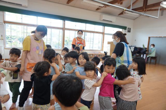 仏教行事のほか、お誕生会や全園児で楽しむ七夕パーティー、お月見パーティーなど、子どもと一緒に楽しむ行事を通して、各年齢だけでなく園全体での保育も大切に行っています。