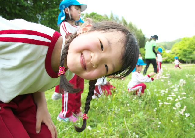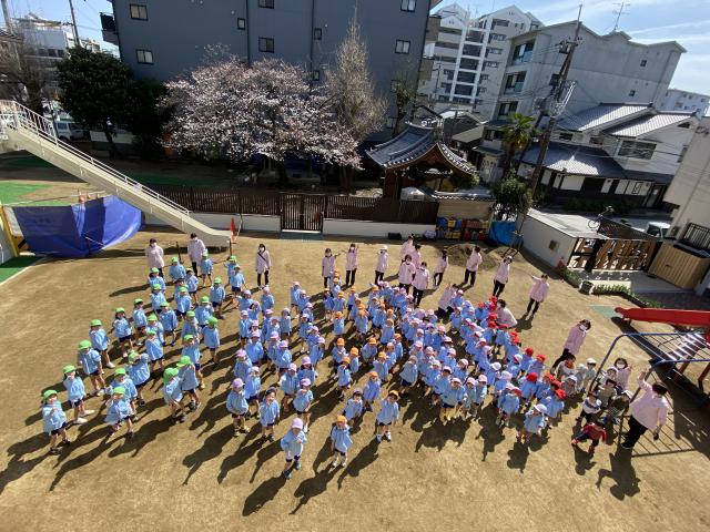 子どもたちに分かりやすく「いつも にこにこ ほがらかに」と伝え、日々思いやりの言葉かけと笑顔を大切に過ごしています。