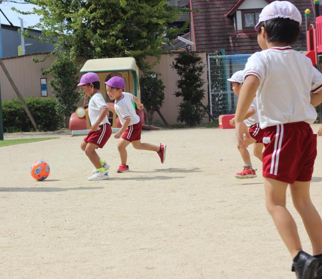春には、たんぽぽやチューリップの花に感動したり、夏にはセミを捕まえたり朝顔の花を見つけたり、秋には落ち葉拾いを楽しんだり、冬には氷を作ったりと楽しいことがいっぱいです。じゃがいも堀やさつまいも堀など収穫の楽しみを味わっています。ダンスや体操・音楽・絵画造形活動等、興味のあるものにも取り組めるような環境を整えて楽しく活動しています。