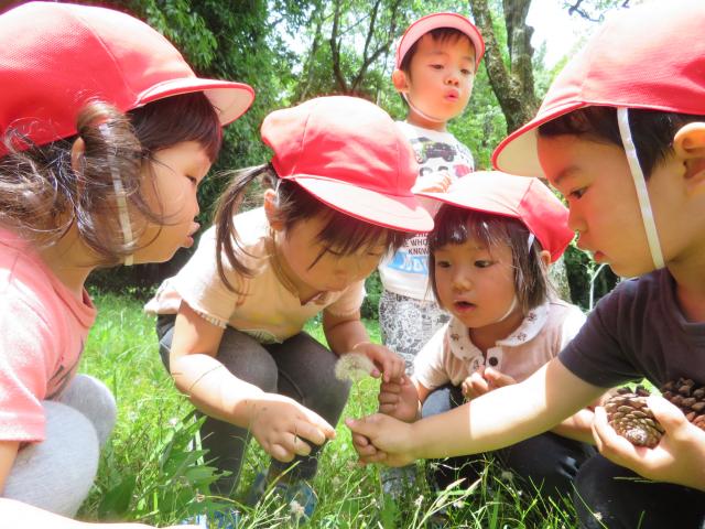 「豊かなこころ、豊かな感性を育てること」を目標に出来るだけ外に出て、四季折々の身近な自然に触れたり、日常の生活のひとつひとつを丁寧に味わう保育を大切にしています。