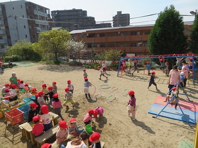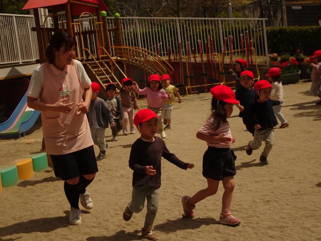 年少さんの担任をさせて頂いています。園庭で遊んだり、一緒に絵本を読んだり、給食を食べたりと、子どもの成長を感じながら過ごしています。