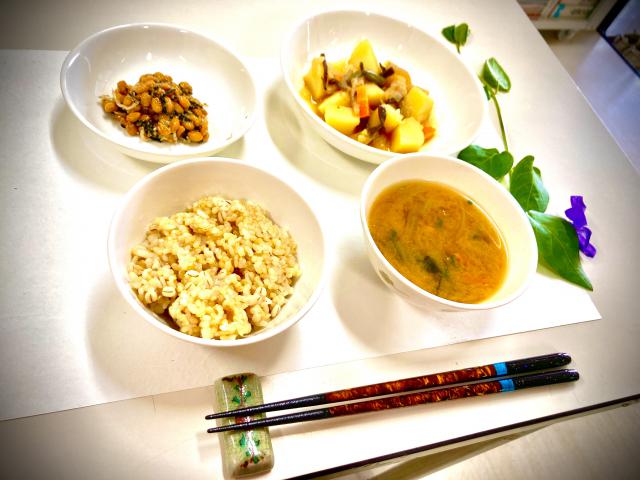玄米を中心とした和食のオーガニック給食を、園内の調理室で手作りする自園給食として提供しています。できる限り有機・無農薬の食材を使用し、素材本来の味を大切にしたやさしい味付けの給食は子どもたちや職員にも大好評です。