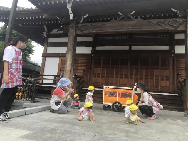 たくさんの玩具や遊具・保育教材、お寺内の栽培などを使って、子ども達と遊びを深め、新しい経験と感動を得ることを大切に活動しています。