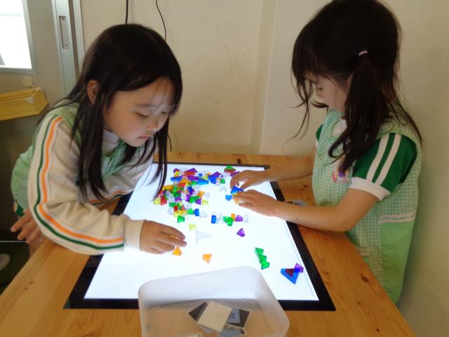ゲームが好きで、一日中家にひきこもってゲームをしています。先生もマインクラフトやってんで!!というと盛り上がります。園では廃材でピッケルや鎧をつくったりしていますが、家でもやっています。
