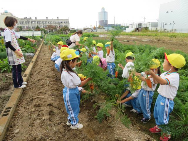 ・自園で季節の野菜を収穫し給食で毎日登場!!