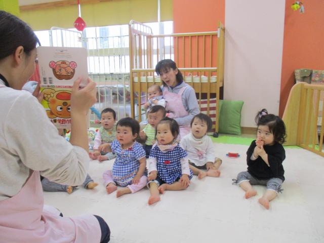 乳児クラスでは担当制保育を行い、保育者との関わりを大切にしながら、大人との愛着関係の構築に努めています。保育者は愛情を持って子ども達に関わります。