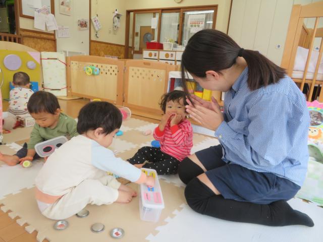 乳児クラスは緩やかな担当制を取り入れています。まずは保育者との心の絆を結び、子どもの思いをたっぷりと受け止めています。