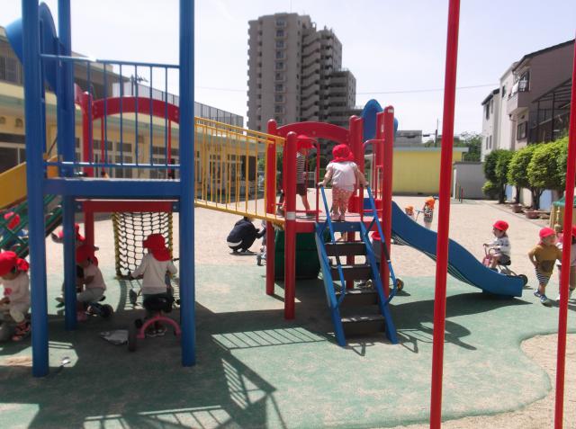 本町こども園は、寝屋川市の中心部に位置しながら広い園庭を持ち、大きな公園に隣接している恵まれた環境にあります。