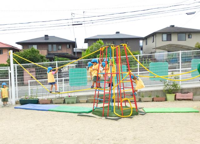豊かな環境の中で、情緒の安定を図り健康な身体づくりを第一として、体力づくりに努めています。