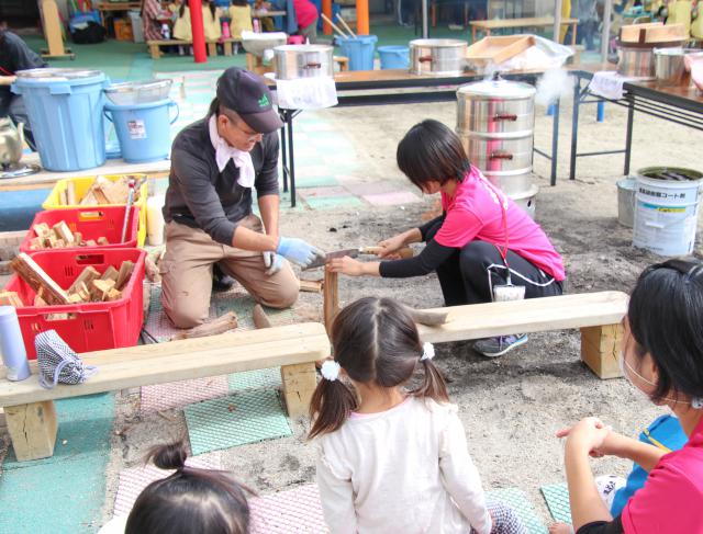 保育理念として、自分で考えて主体的に判断して行動し、よりよく問題解決できる力「一人ひとりの自立支援」(例えば、遊びに使いたい服を作りたいと考えた子どもがいたとしたら、服になる布を寄付してもらえる看板を子ども達が作り、集まった布で服を縫って遊びを深めています。)、他人を思いやる心、豊かな人間性、たくましく生きるための健康や体力「一人ひとりの自律支援」(例えば、園庭あそびの中でいろいろな道具を工夫して子どもが作るアスレチックを作っています。)、子ども・保護者、保育士も地域社会と共に育つよう見守る「共育ち支援」という事を掲げ、保育士も子どもも輝いていられる保育所です。