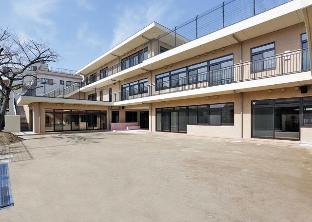 令和5年2月に新園舎が完成しました。明るく開放感のある園舎でランチルームでの食事も楽しんでいます。