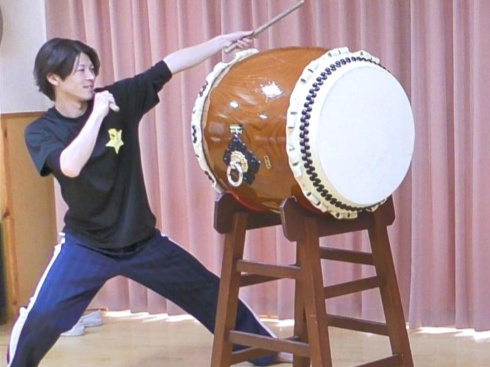 音楽は、各学年で使用する楽器は違いますが、4・5歳児は和太鼓を取り入れ、高齢者施設の訪問や地域のイベントにも参加しています。