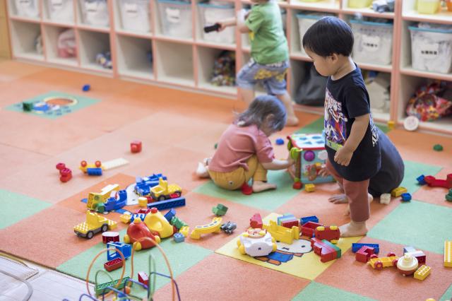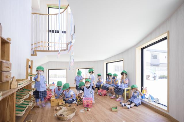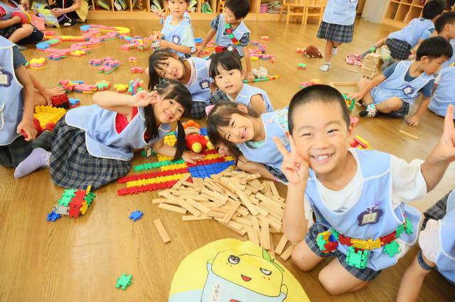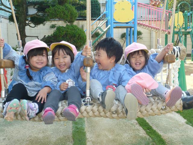 乳児は、よく食べて、よく遊んで、よく寝る。幼児はそれプラス教育的な事も少し入ってきます。4才からの英語指導、漢字指導、絵画指導や5才からの体操指導は、子どもたちが無理なく楽しんで参加できるよう遊びの要素を取り入れて行っています。