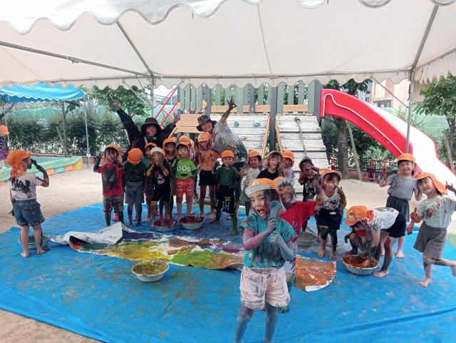 子どもの主体性を尊重し、散歩やリズム運動などを通してしなやかで丈夫な身体づくり、伝統食や栽培・クッキングを通して豊かな食育に取組んでいます。四季の自然や和太鼓など文化との出会いを通して感性や表現力を培っています。クラスの集団生活を通して仲間との関係を築き、あそびの中で目標に向かってがんばる粘り強さや達成感を自信につなげる保育をおこなっています。