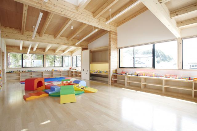 「光、風、土、水」という自然に囲まれた環境の中で子どもたちも保育者ものびのびと、ゆったり過ごせる施設です。