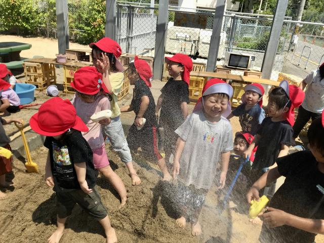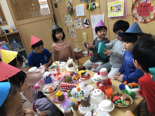 今異年齢3、4、5もですかね。3、4、5の1クラスと別で、5歳の11名です。基本的には1人で。今5歳児はトランプとか、ままごと、積み木、ゲーム遊び、けいどろですね。高鬼、ころがしドッチボール、あと缶蹴りとか。お散歩は、園の近くの公園、東向公園。おっきいですね。歩いて2、3分だったら山ノ本公園っていう、アスレチックあるし、遊歩道みたいなのもあるんかな。一周ぐるっと走れるみたいな。例年だったら市バスに乗って、梅小路公園にここ何年かはずっと行ってます。今年は行ってなくて。お弁当持って、東向公園に。