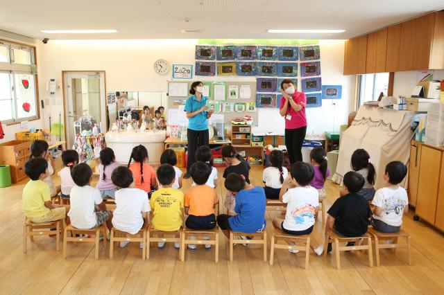 子どもが音楽などの様々な体験や活動を通して集中力、創造力、表現力を高め、豊かな感性を培う保育をする。