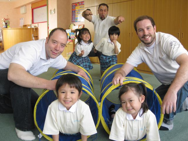 日常生活の中で一人でできることが広がる年齢ですが、まだまだ援助が必要な場面も多いです。そのお手伝いをしたり、自然と楽しんで英語に触れられるよう活動を考えたり、コミュニケーションのとり方を伝えたりしています。