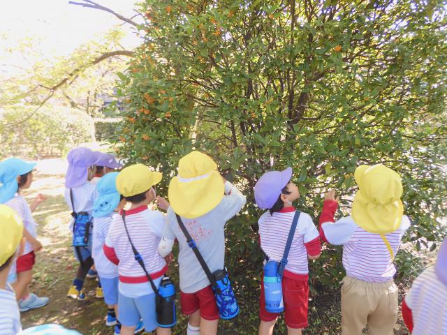 園庭では、木陰の下で、砂遊びやどろんこ遊び、虫探し、木の実で遊んだり、自然豊かな環境で四季の変化を子どもとともに感じることができます。