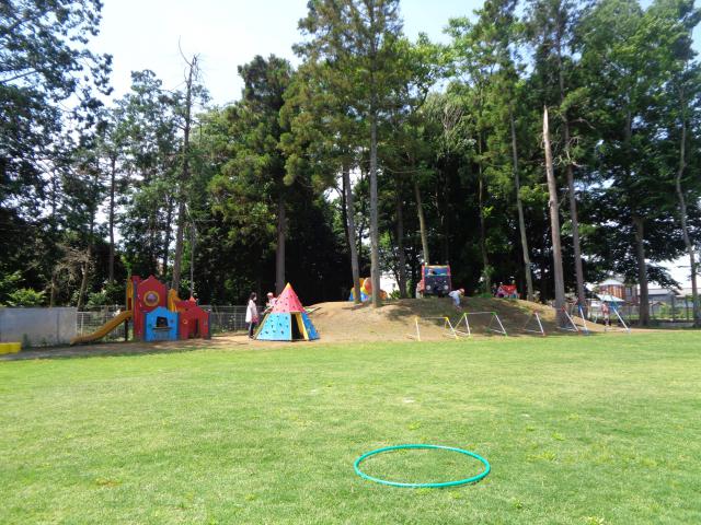 広い天然の芝生と高低差のある園庭、こども達が育てている畑もある自然豊かな環境!