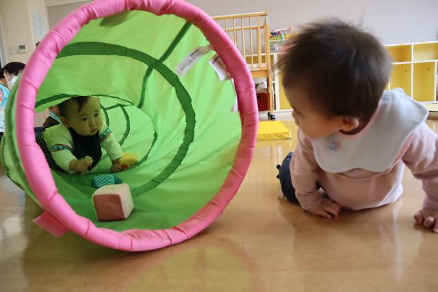 2歳児クラスの担任をしています。食事や睡眠、排泄など基本的な生活習慣が身につくようにサポートしたり、あそびを通して心身の発達を促したりしています。また保護者対応や行事の準備、日々の制作準備などもしています。
