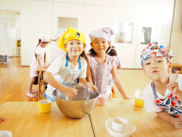 のびのびいきいき遊ぶことが、子どもの発達の必須条件であるという思いのもと、毎日のたくさんの体験や、英語あそび・運動あそび・理科あそびなどの「あそび」を通して子どもたちが大きく成長していくことを大切にしています。