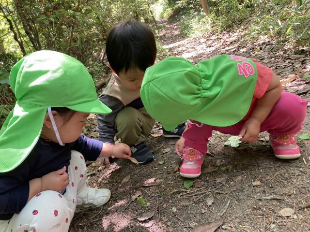 島熊山の恵まれた自然の中へ散歩によく出かけます。クラス関係なく散歩に出かけることもあり、子どもの異年齢でかかわる姿が見られ、とても微笑ましいです。