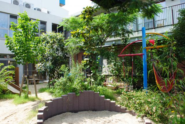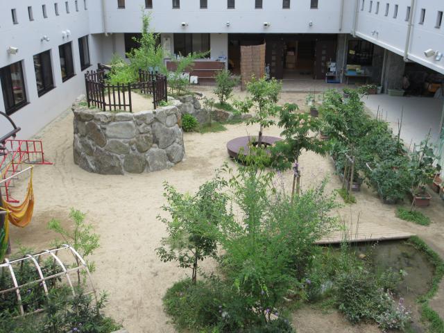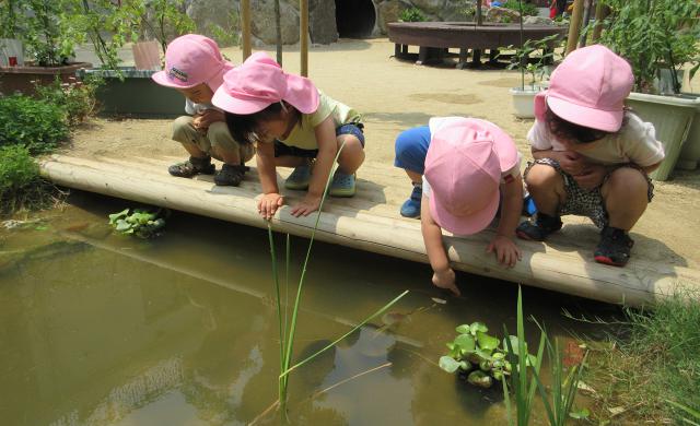 都会の中ながら、できるだけ自然を身近に体験することで、命の大切さや神さまの大きな力を感じていきます。田んぼで稲を苗から育てたり、季節の野菜を育てて自分で調理して食べたり、たくさんの昆虫や動物と触れ合って生活しています。