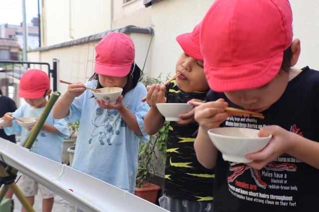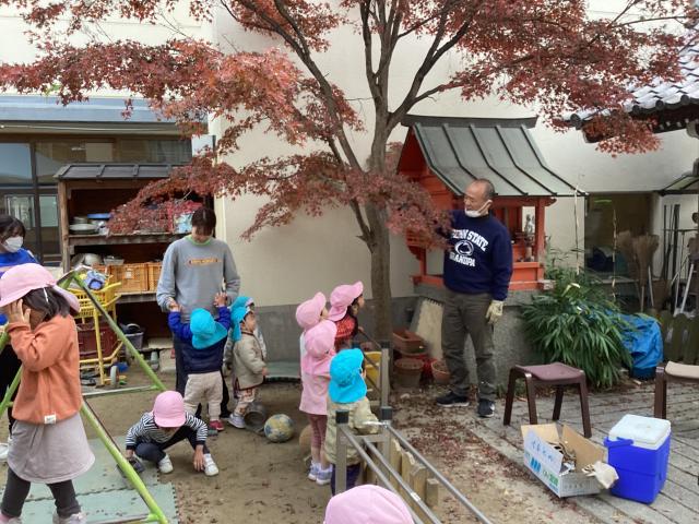 ”一緒に虫を追いかけたり、一緒に草花の成長に目を向けたり・・・。小さな自然を体いっぱいに感じ、共に知らせあい、共に学びあいながら、五感を使いゆっくり成長してゆく・・・そんな保育を心掛けています。そして、その子ども達が成長した時、自然に対し人に対して全てのものに対して、やさしい心を失わないでいてくれることを祈っています。そう、ののさまの(仏様)のように・・・。” 園長の想い