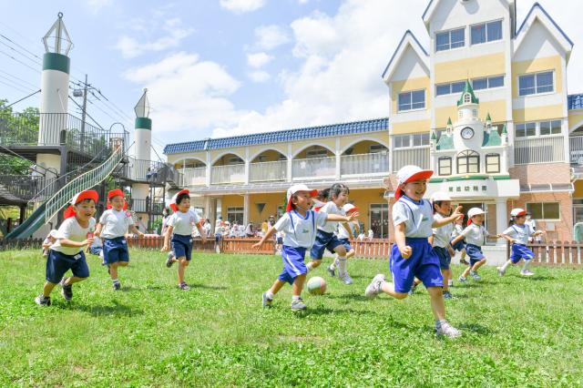 子供にとって自由にのびのびと遊ぶことは幼児期の生活でもっとも大切なことです。子供は多くの友達との遊びを通して、社会生活に必要な規則、生活習慣、判断力、知識を学んでいきます。開進幼稚園では、登園するとすぐに園庭で、年長児から年少児まで混じり合って自由遊びが始まります。